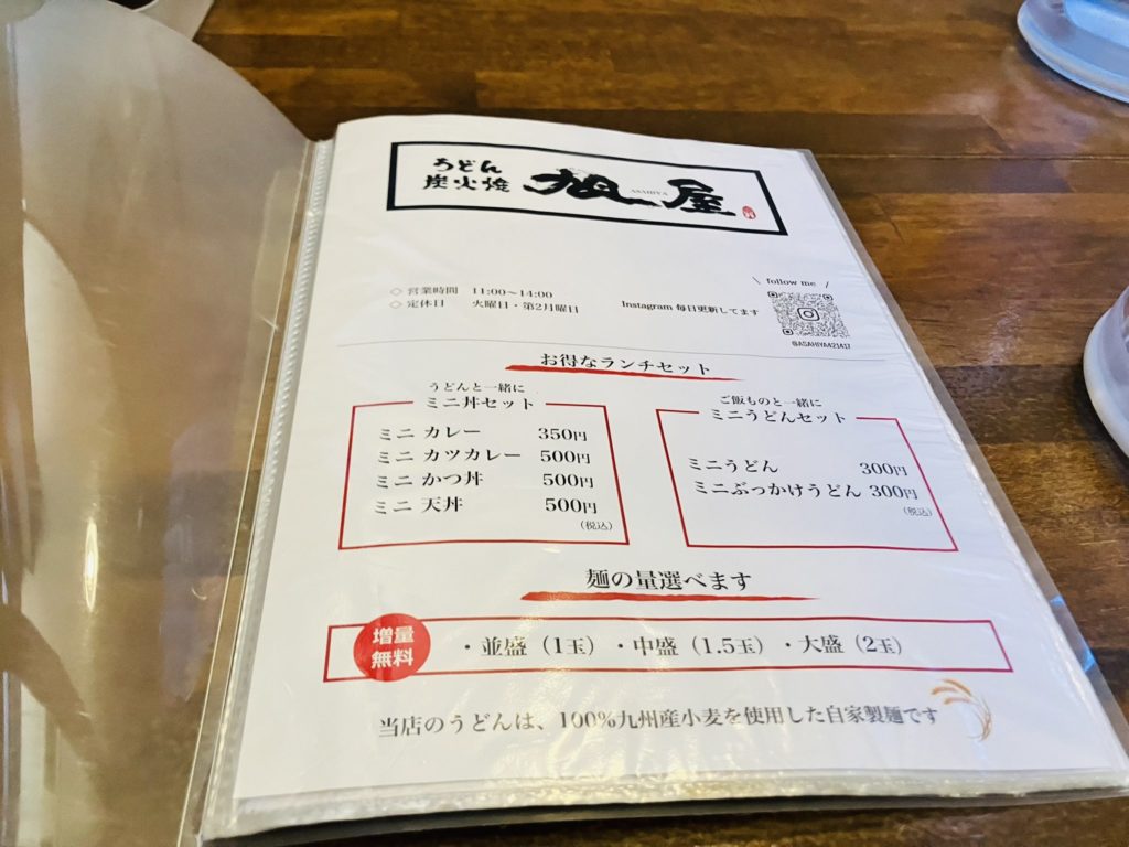 うどん炭火焼 旭屋のメニュー