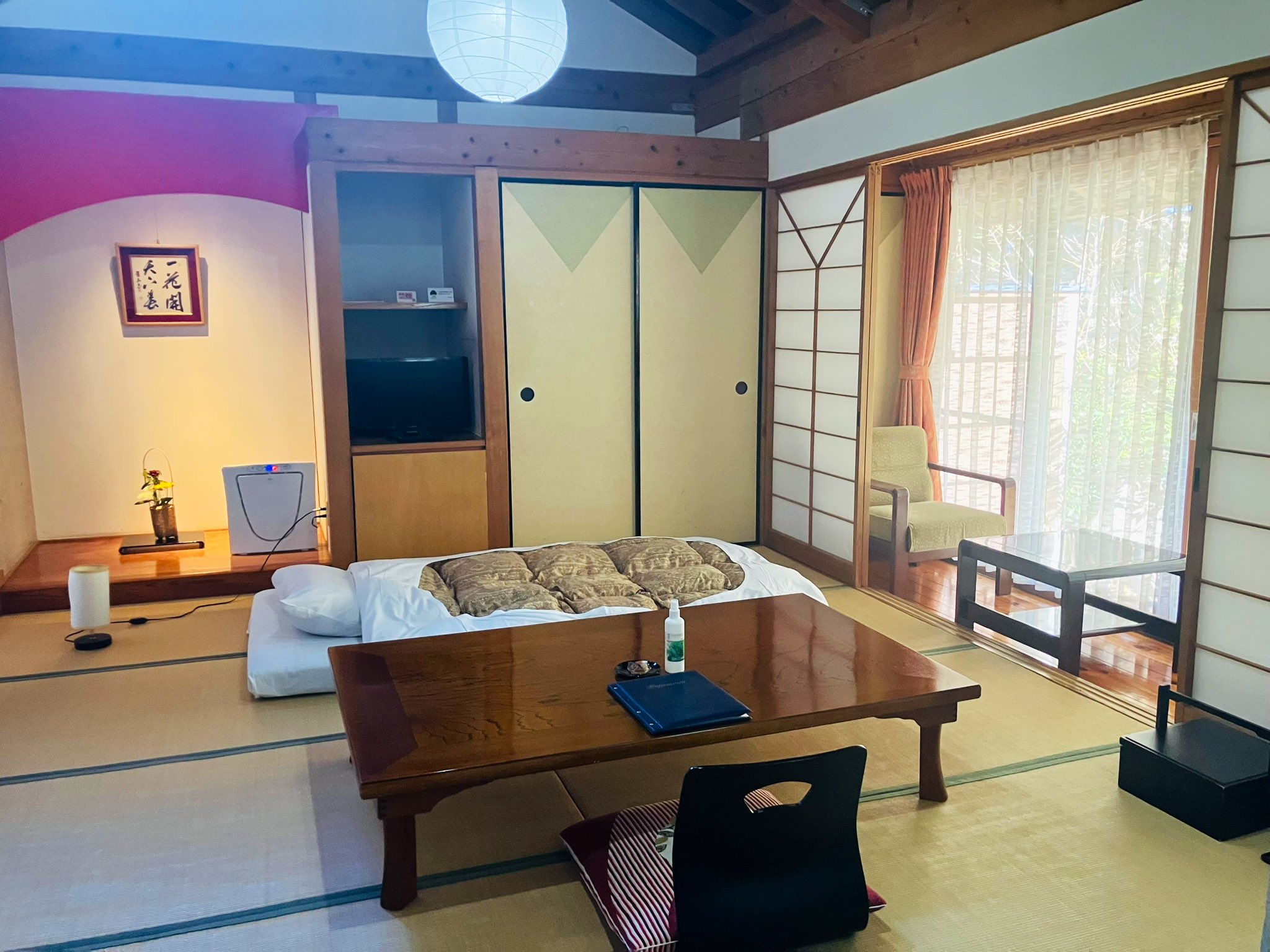 一方で、温かいお茶の水がすでに用意されていたり、お茶菓子が山江村名物の栗饅頭だったりと、細やかな気遣いが見られ、Wi-Fiのスピードが速かったのはありがたかったです。
