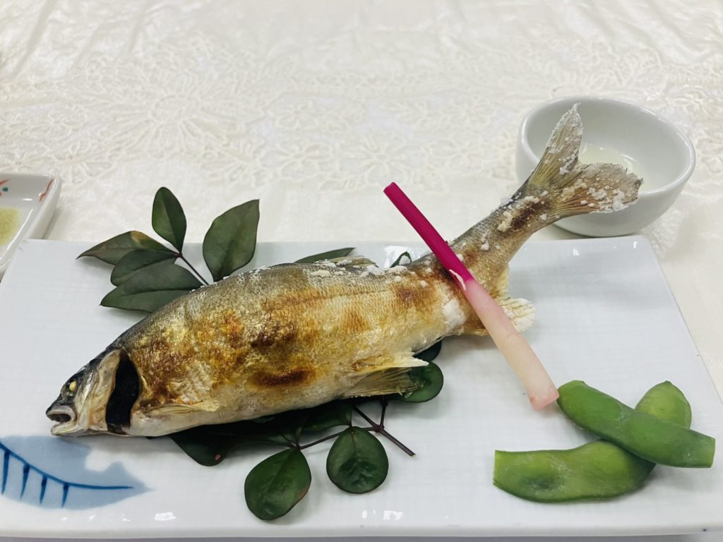 陶板焼きや鮎の塩焼き、天ぷらに山菜釜飯とメインディッシュが次々と出てくるので、食べ応えは抜群です。男性でも満腹になるボリューム。