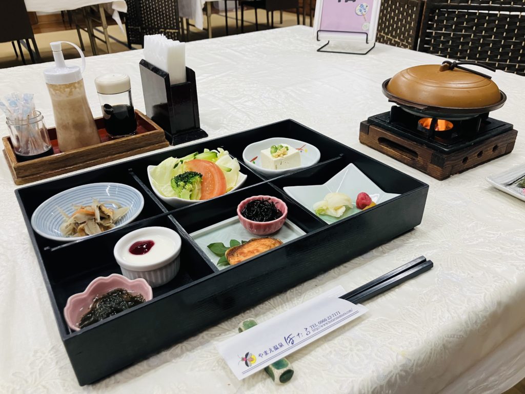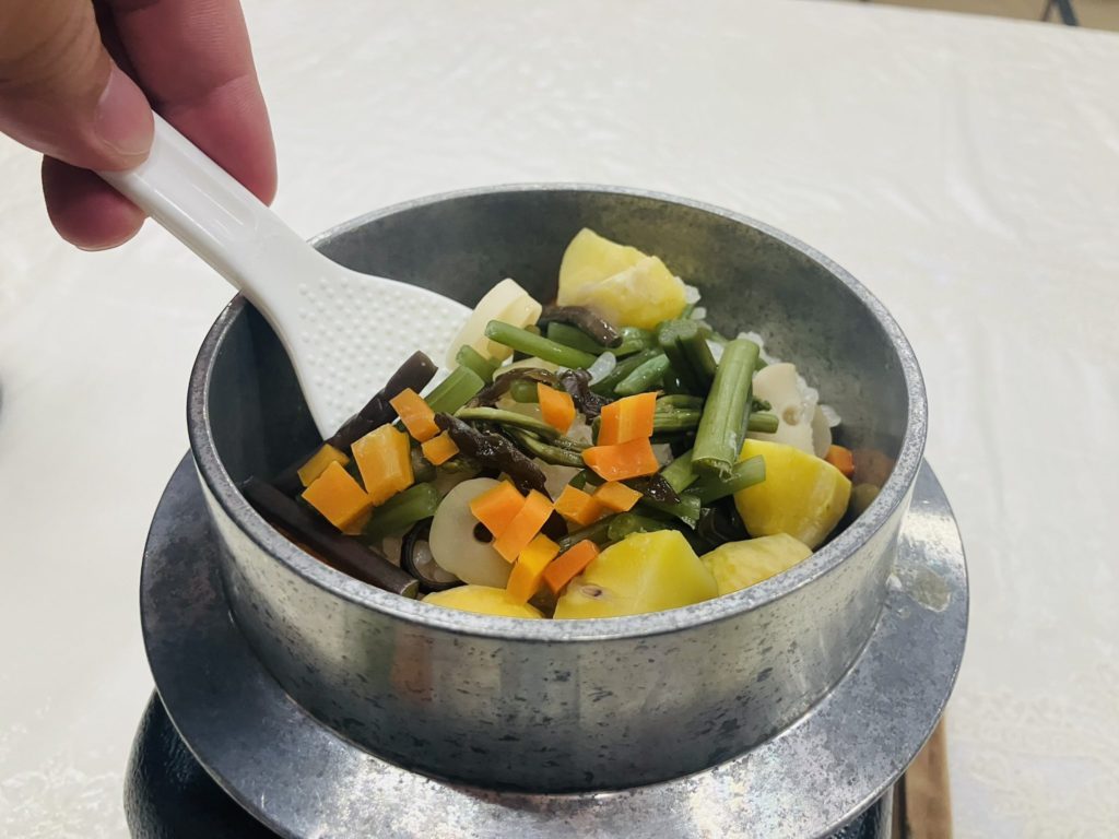 個人的には、特に山江村名物の栗が入った山菜釜飯が抜群でした。ホクホクとした栗の甘みが山菜のシャキシャキ感、ふっくらしたご飯と混ざると、素朴ながら深い味わいになります。