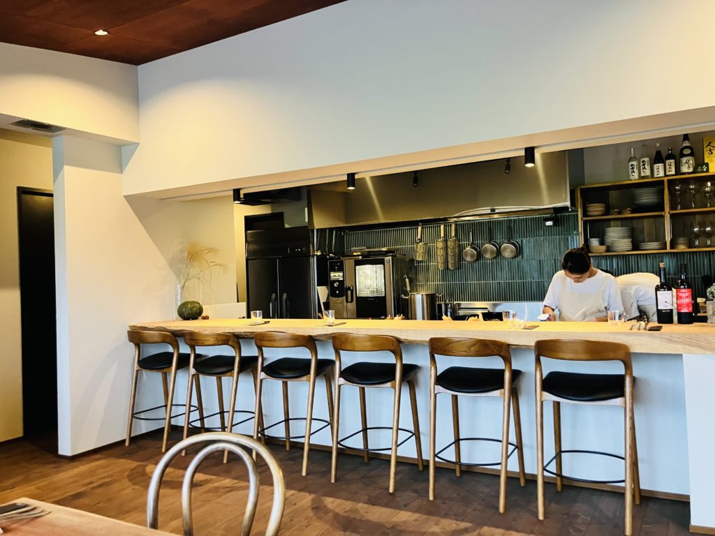オープンキッチンになっており、女性シェフの動きを見ながら料理を待てるので、次はどんな料理が出てくるのだろう?とワクワクしながら待つこともできます。