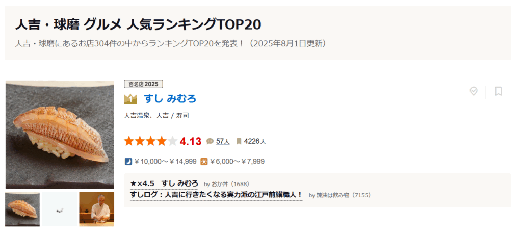 実際、数々のメディアでもその評価はうなぎのぼりで、2025年には全国食べログブロンズアワード、食べログ西日本の寿司100名店にも掲載され、人吉球磨地方の飲食店でも評価NO.1に輝いています。