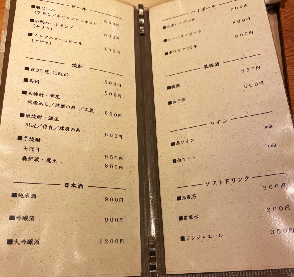 ※どんなお酒があるのか、大体の価格の目安にドリンクのメニュー表も下部に記載しますが、価格は掲載時のものとは変動する可能性もあります。