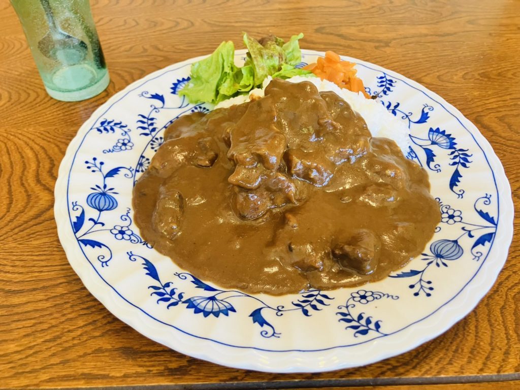 トロピカルフルーツや旬のフルーツを入れて五日間煮込んだ欧風カレーが名物。コク深いカレーは見た目にもわかるほど粘度が濃く、他では味わえない味です。
