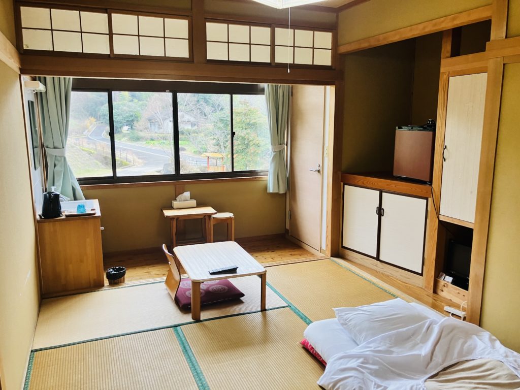 室内は(※1人宿泊の場合)6畳1間のシンプルな造り。大浴場は共有です。