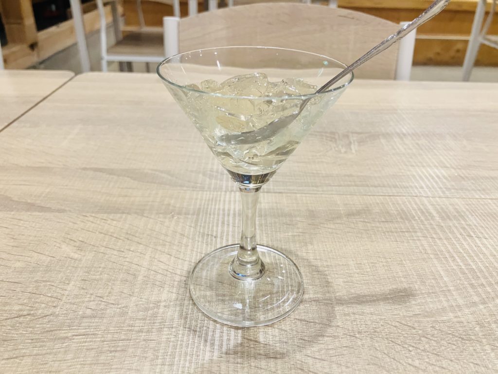 また、水上村ではクロモジという独特のお茶(ノンカフェインの枝や葉)を育てていますが、水上荘では地元の焼酎蔵とコラボし、クロモジのリキュールなども提供しています。お酒の飲めない方でも、料理の最後に、このクロモジを使ったゼリーなどを提供されるので、水上村ならではの食を最初から最後まで楽しむことができるのです。