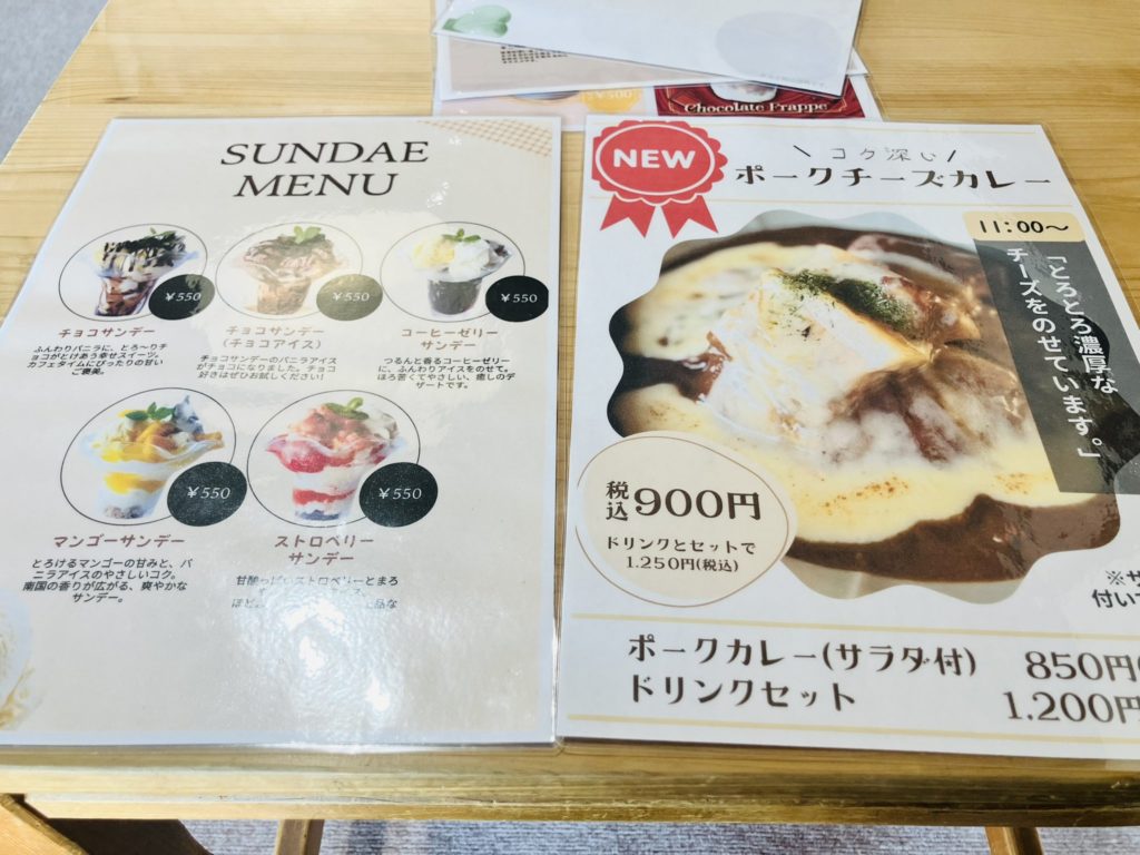 おたけさんカフェにオープン1か月後ごろに訪ねたときは、ドリンク類とカレーがメニューとして提供されていました。