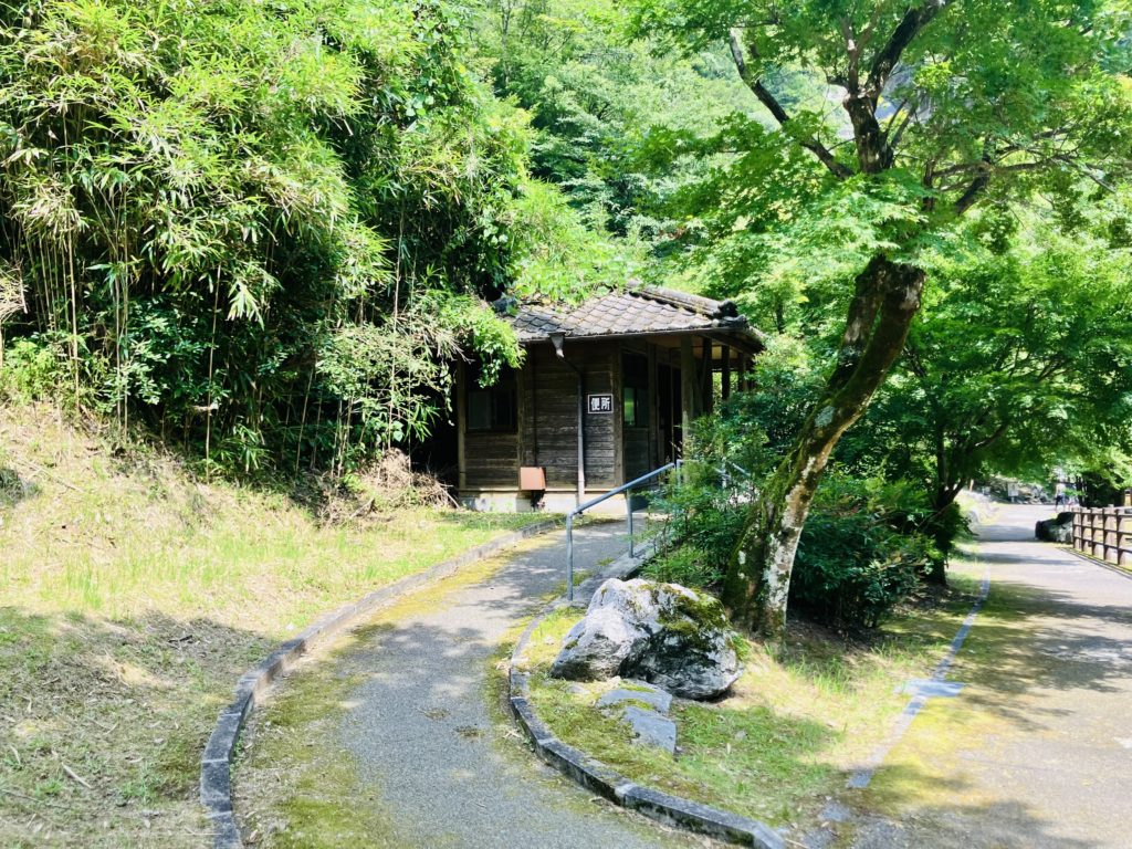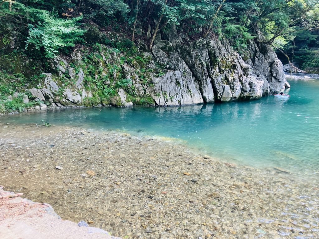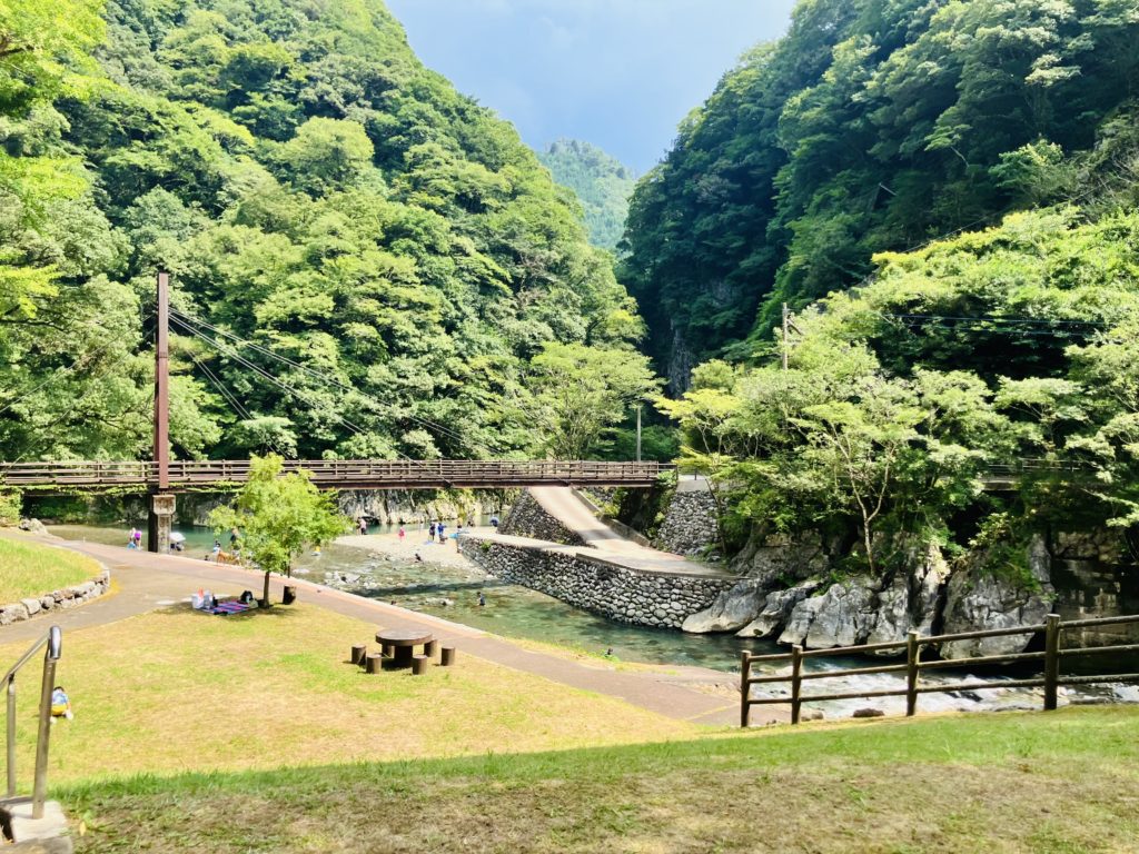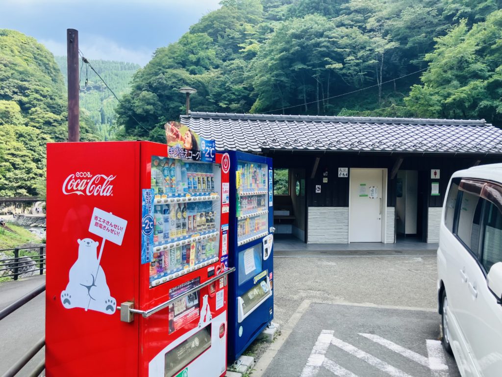 白滝公園内には駐車場、自販機、屋根付きの休憩スポットなどが一通りそろっています。公園でゆっくりとした時間を過ごすのにおすすめ。川の流れは緩やかで小さな神社もあるおかげか、たくさんの人がいるときでも静謐な空気を感じられて、特に夏場に子連れで川遊びをするなら最高のスポットです。五木村の観光案内でも流れの緩やかさはピカイチと評価されています。