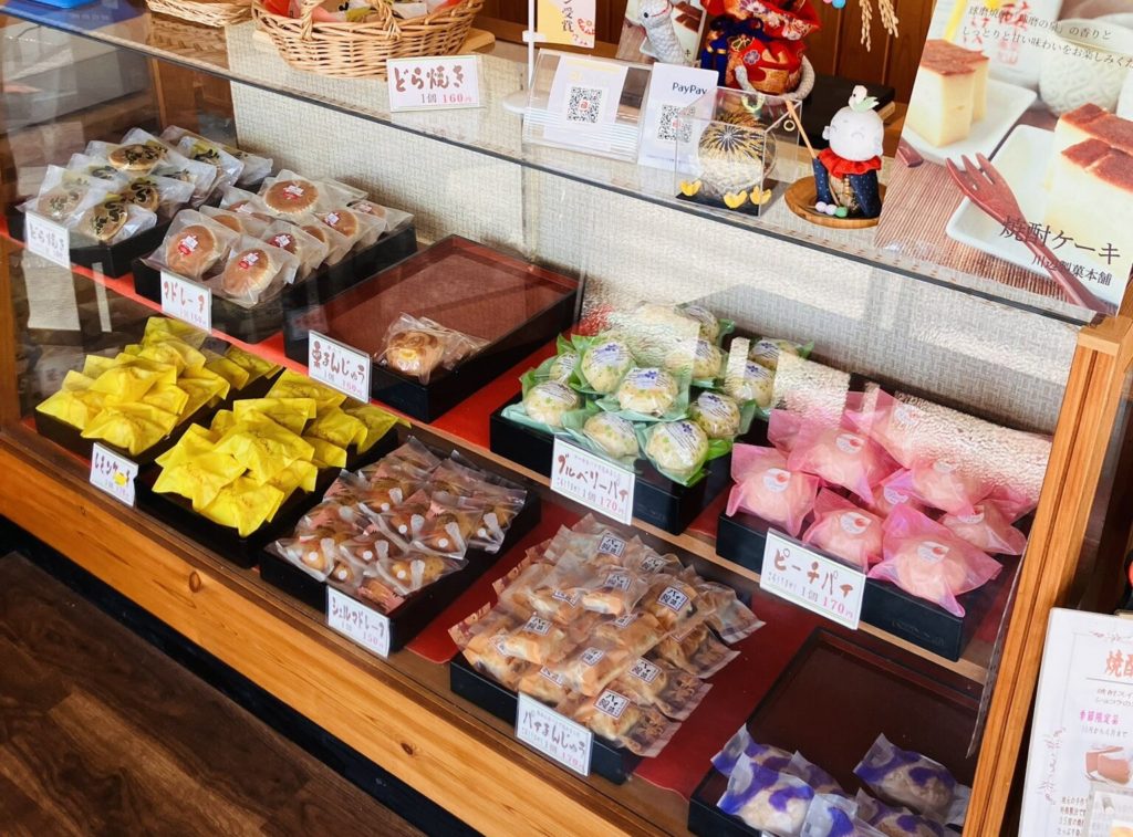 多良木町の老舗洋菓子店。現在はショーケースにケーキなどは並んでおらず、名物の球磨焼酎カステラやチーズ饅頭などを販売されています。