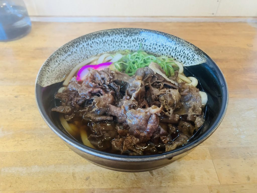 人吉球磨では唯一のスーパー併設のうどん屋※ショッピングモールは除く。肉うどんは甘辛くたいた牛肉がたっぷり入っており、スープは人吉球磨らしく甘味の強いまったり味。これぞ人吉球磨のうどんです