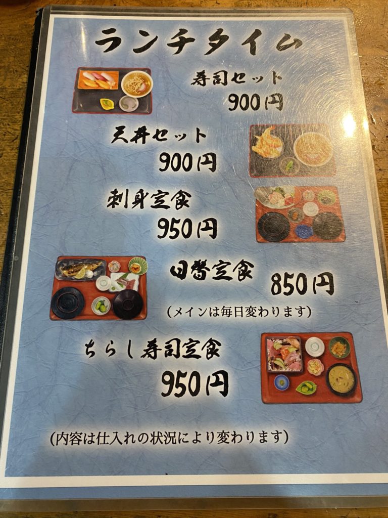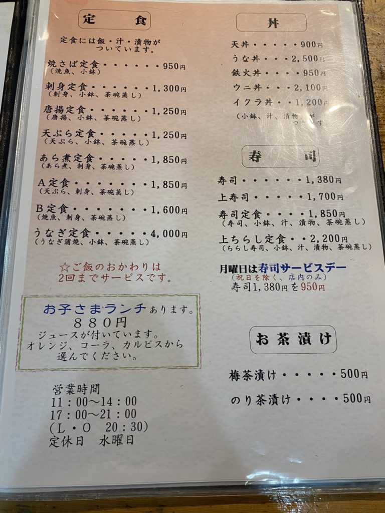 魚八のメニューは魚介類を中心とした料理であれば定食類から一品ものまで、一通りそろっています。